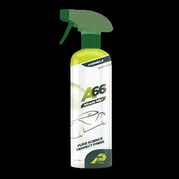 A66 Miracle Mist werkt snel en gemakkelijk op alle geverfde oppervlakken, blanke lak, plastic, glas, metaal, vinyl en rubberen bekleding. Deze exclusieve formule verwijdert veilig stof, licht straatvuil, vingerafdrukken en watervlekken. Perfect voor het wassen van vlekken of het volledig wassen van voertuigen zonder water. A66 Miracle Mist laat een "wet look" glans achter. Bodyshop geschikt. Bevat geen was. Niet statisch en anti-streep. Schuurt niet en zonder siliconen. Gebruiksaanwijzing: Goed schudden. Vermijd spuiten op hete oppervlakken. Spray nevel op een klein gebied. Wrijf in het oppervlak met een zachte schone badstofdoek. Draai de doek om en polijst tot een hoogglans. Distributeur: Verdun concentraat 20:1 met water. Eindgebruiker: product is klaar voor gebruik.