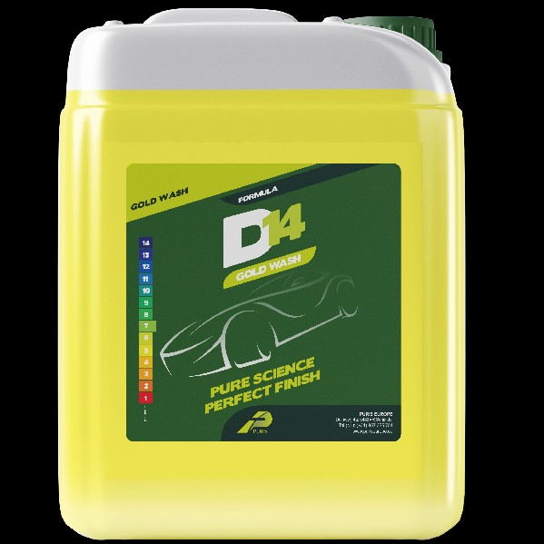 D14 GOLD WASH & WAX is zeer goed verdunbaar en produceert grote hoeveelheden overvloedig zeepsop na het wassen. D14 GOLD WASH & WAX laat voertuigen schoon en streeploos achter. Het is niet schadelijk voor eerder gewaxte of verzegelde afwerkingen. D14 GOLD WASH & WAX spoelt vrij uit en laat een hoogglanzende afwerking achter. Biologisch afbreekbaar. Gebruiksaanwijzing: HANDGEBRUIK: Doseer 30-60 ml in een emmer van 20L. Gebruik water onder hoge druk om schuim te maken. Wassen met washandschoen of zachte doek, afspoelen en zeem. MACHINEGEBRUIK: Verdun met een snelheid van 15-30ml per 4L water.