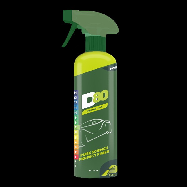 D80 FRESH AIR is economical and long lasting. Use D80 FRESH AIR to deodorize bad odors where they exist. It may be sprayed on carpets, upholstery and headliners. Add to shampoo solution for more thorough deodorizing.