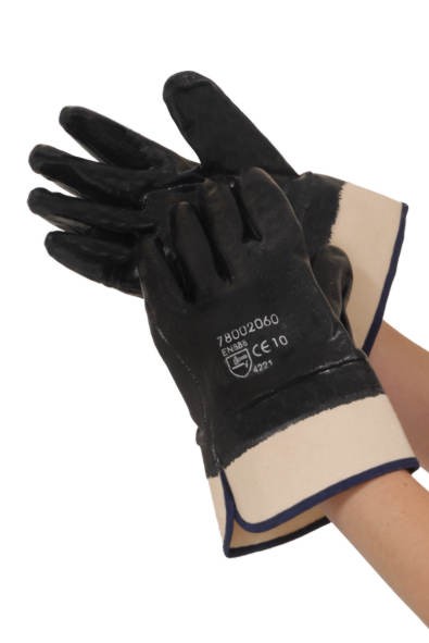 Handschoen met sterke toplaag van nitril op een geborstelde jersey katoenen
