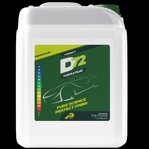 D72 Purple Plus Cleaner Is a highly effective acid-free, non-caustic, pH balanced, cleaner for all types of wheels: steel, alloy, chrome, painted, powder coated, uncoated and anodized aluminum. Effortlessly loosens and removes stubborn grime, such as burnt-on brake dust, oil, grease, rubber residue and other road dirt from wheels, rims, hub caps and lug nuts. Turns bright purple while fighting grime.